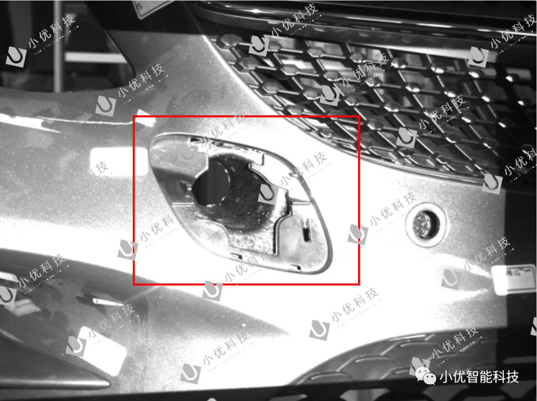 3D視覺選取如下圖一所示的保險杠上的拖車蓋位置(圖二紅框處),或其他共兩個特征的坐標給機器人(此兩點作為基準點),3D視覺根據(jù)兩個基準的位置變化計算機器人所要走的正確位置,機器人按照發(fā)送的點位走軌跡,保證每次視覺的位置偏差在±0.5mm內(nèi)。