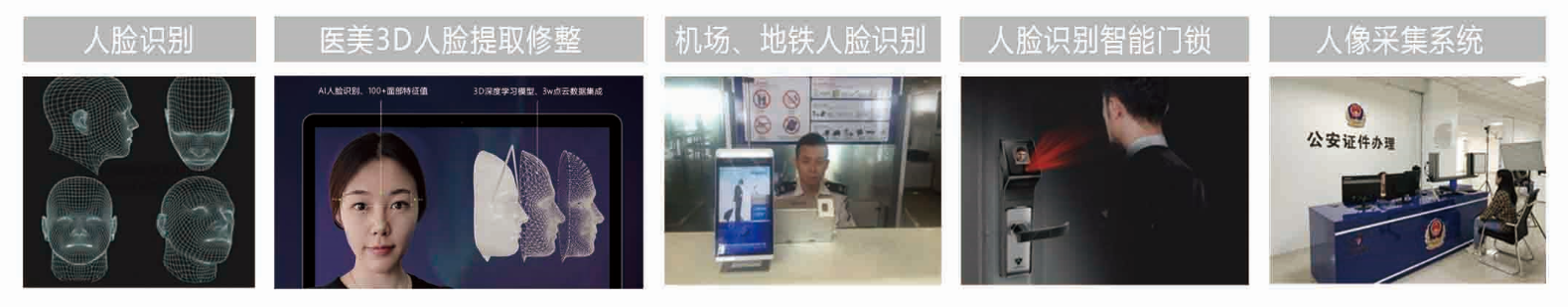 公司自主研發(fā)的3D機器視覺模組采用激光/DLP白光編碼光柵結(jié)構(gòu)光+雙工業(yè)相機方案,還原物體三維信息,廣泛應用于消費電子領(lǐng)域、工業(yè)領(lǐng)域和安防領(lǐng)域,具有精度高、速度快、成本低的優(yōu)勢。