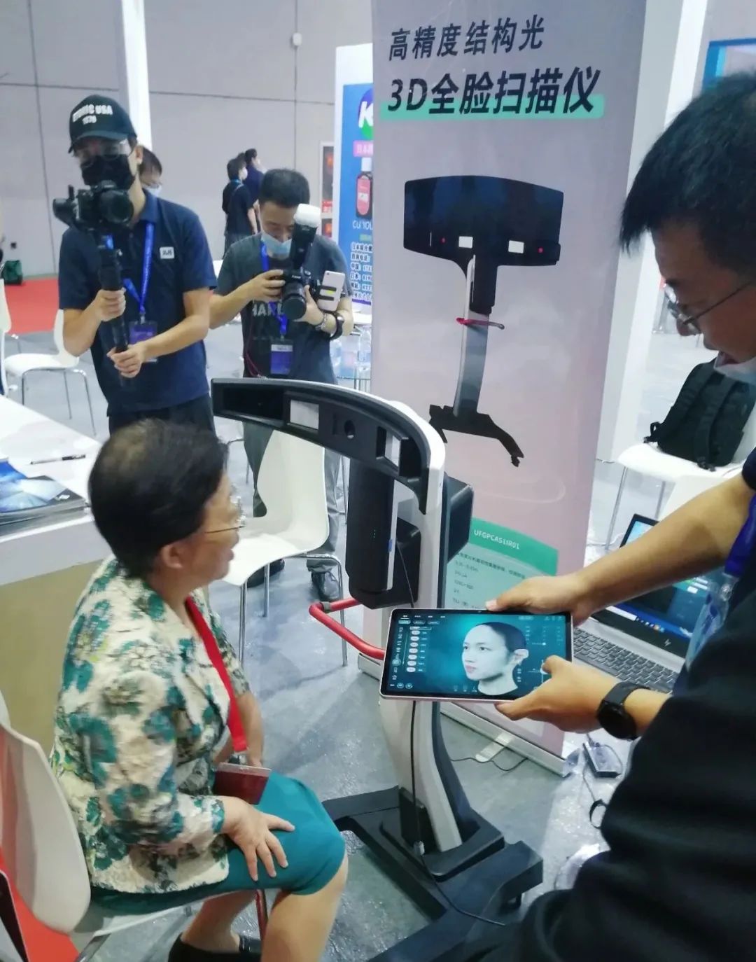 小優(yōu)科技受邀參加2021中日韓健康與美麗產(chǎn)業(yè)博覽會,在本次博覽會上小優(yōu)科技展出最新高精度3D全臉掃描儀,通過三維重建技術還原人臉真實三維信息,進而用量化美學指標對人臉外觀缺陷進行準確判斷,設計個性化操作模式,模擬最佳整形效果,讓現(xiàn)場觀眾親身體驗高精度3D人臉數(shù)據(jù)給醫(yī)美行業(yè)帶來的顛覆性。
