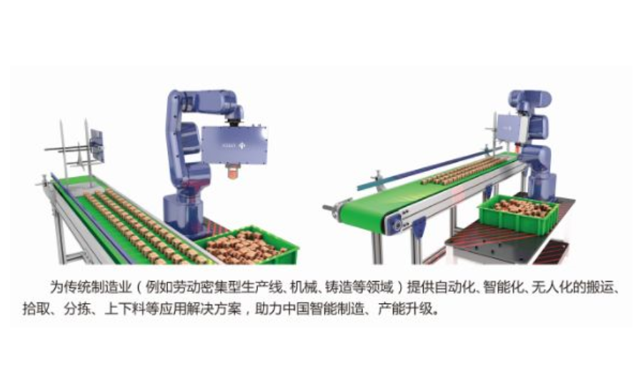 產(chǎn)品采用采用工業(yè)機(jī)械手和3D工業(yè)機(jī)器視覺(jué)檢測(cè)系統(tǒng)相結(jié)合的方式,3D工業(yè)機(jī)器視覺(jué)檢測(cè)系統(tǒng)可協(xié)助工業(yè)機(jī)器人實(shí)現(xiàn)3D智能抓取,專業(yè)針對(duì)散亂無(wú)序、堆放的工件設(shè)計(jì),通過(guò)對(duì)工件3D數(shù)據(jù)的高速掃描,形成高精度的三維點(diǎn)云數(shù)據(jù),結(jié)合圖像處理、點(diǎn)云分析、智能匹配、自主運(yùn)動(dòng)路徑規(guī)劃與防碰撞設(shè)計(jì) ,以實(shí)現(xiàn)機(jī)器人的精確抓取定位引導(dǎo),使工業(yè)機(jī)器人具備真正的立體視覺(jué)感知功能。
